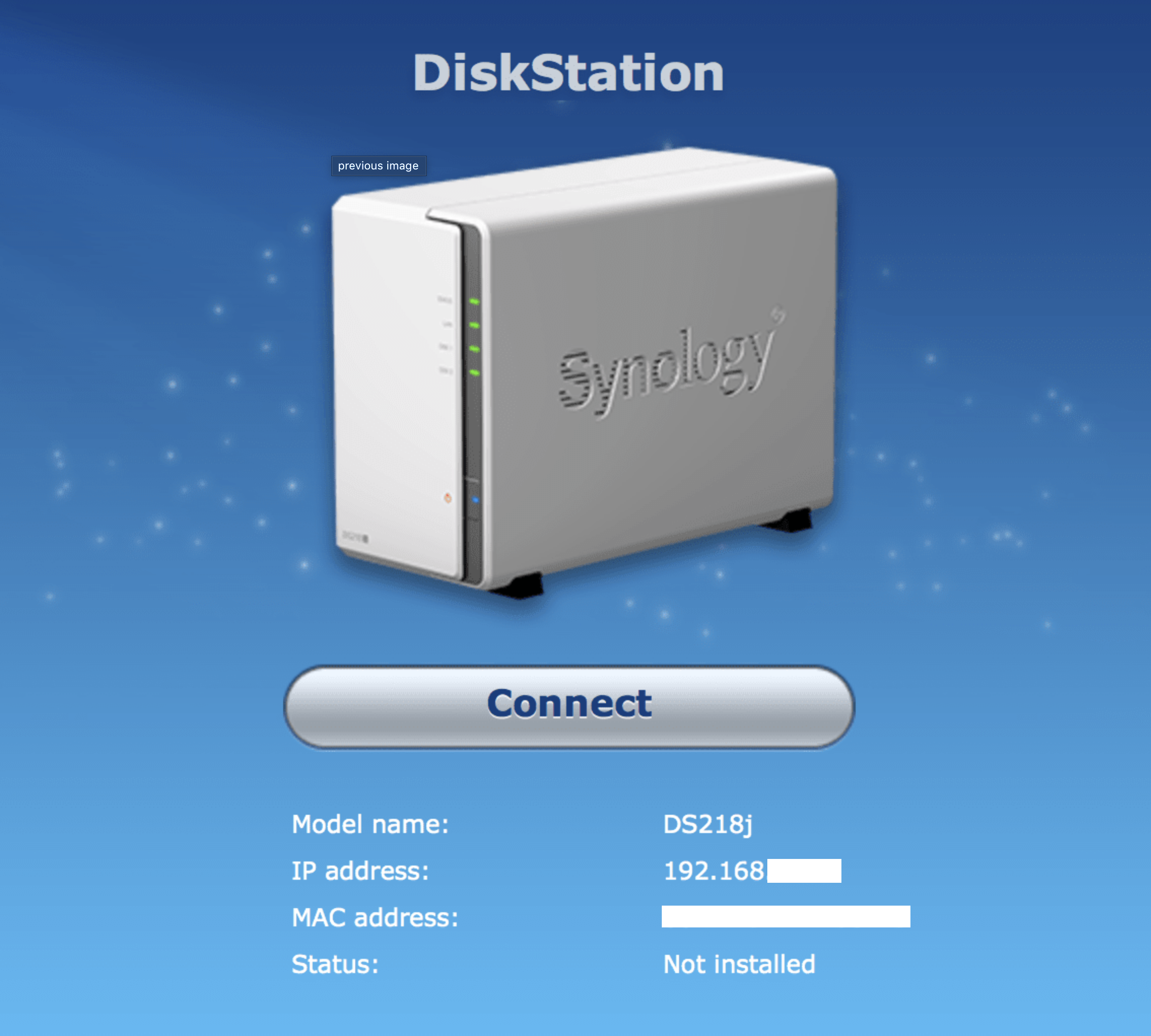 If you use find.synology.com URL you will land on a page similar to the one above. Simply click on the Connect button to continue with DSM installation.