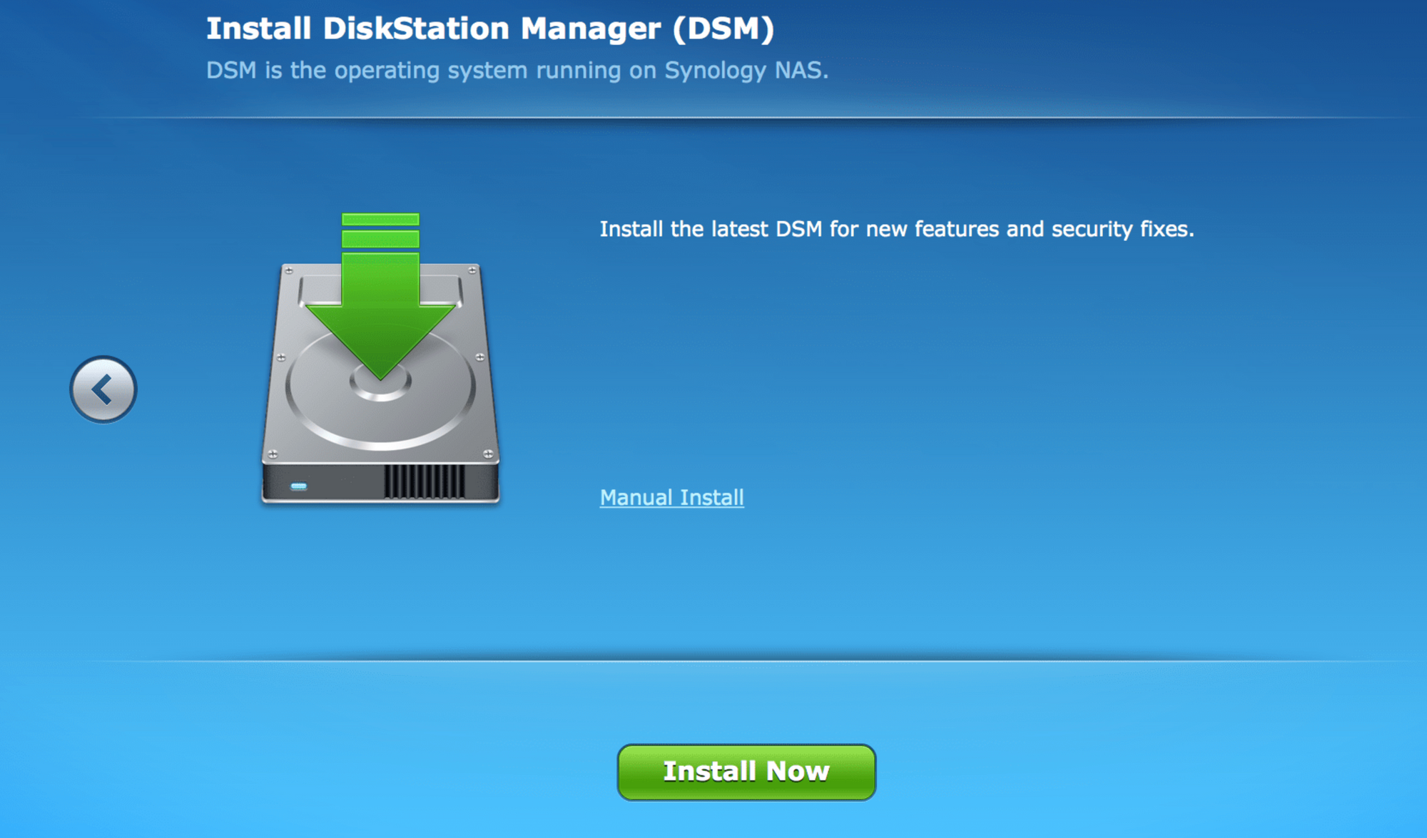 Soon after you have detected your NAS on the network, 1st thing you need is to install DSM on it.
