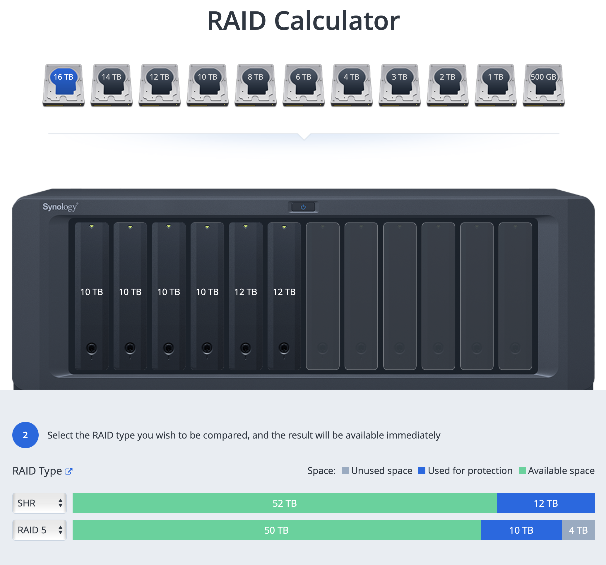 As I said before, this will depend on the number of bays considering that some options will not be possible due to the fact that some RAID types require a minimum number of drives (RAID 5 for example needs a minimum of 3 HDDs).